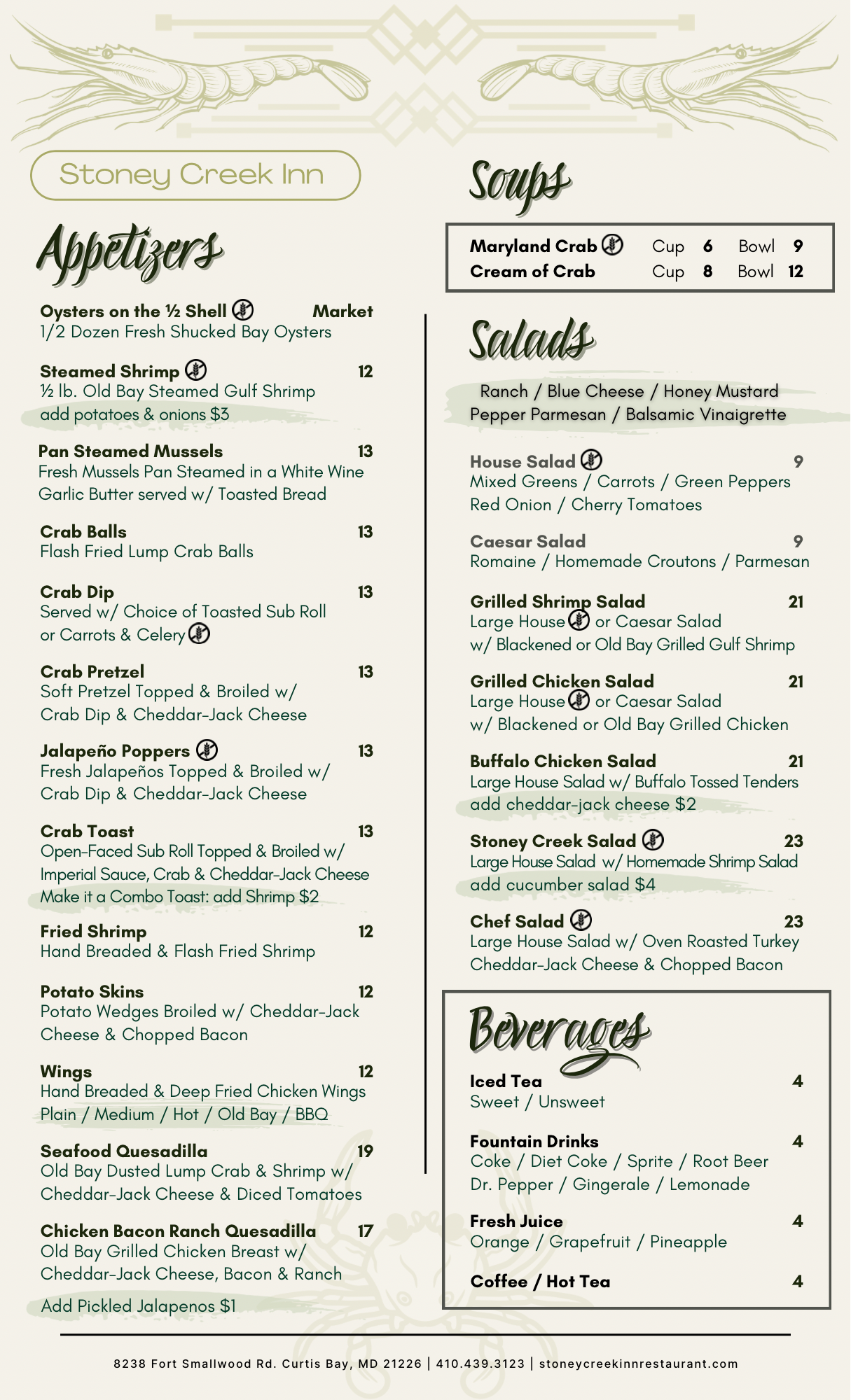½ lb. fresh angus beef w/ American cheese, crab dip, bacon, lettuce & tomato